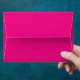 Add a pretty punch to your invitations, with this glamorous envelope done in bright pink. Graphics of a gold tone to pink foil gradient look covers the inside of the envelope. Black return address, on the front, is ready to personalize.