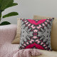 Vibrant modern throw pillow design featuring geometric shapes in hot pink, black and light grey shades.