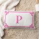 Hot Pink Greek Key Border Monogram Lumbar Pillow