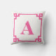Hot Pink Greek Key Border Monogram Throw Pillow