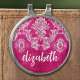 Hot Pink Grunge Damask Pattern Custom Monogram Golf Hat Clip