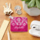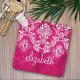 Hot Pink Grunge Damask Pattern Custom Text Keychain