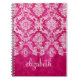 Hot Pink Grunge Damask Pattern Custom Text Notebook