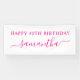 Hot Pink Happy 40th Birthday Elegant Name Banner
