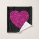 Hot pink heart faux glitter sparkles pattern black bath towel set