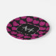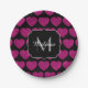 Hot pink heart faux sparkles pattern Monogram Paper Plates