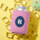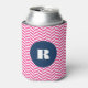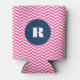 Modern and stylish monogram can cooler featuring hot pink herringbone pattern with navy blue round tag. This will be perfect as a personalized gift. This design is available in a variety of colors and products.