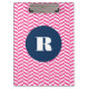 Modern and stylish monogram clipboard featuring hot pink herringbone pattern with navy blue round tag. This will be perfect as a personalized gift. This design is available in a variety of colors and products.