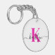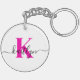 This modern keychain with your first name in a trendy script font in black and your first initial in a modern cap font in hot pink is perfect for your keys. It's stylish and modern and yet very classic.