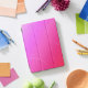 I was super excited when I got my cover in. It is attached by a magnet across the edge. I don’t think it will be very protective but it is very cute. I’m going to keep my iPad in a sleeve and use this face cover while I have it out. It folds to create a tilt for better viewing and to keep the iPad at a slight angle for typing. The colors are bright and it is fun. I’ve really enjoyed it. The personalization looks like amazing. It is the same color as the picture and is the same brightness. Well done! Very nice.