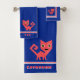 This thick, velvety towel set features a cute cartoon style, quirky hot pink kitty cat on a rich blue background w/ alternating white & hot pink borders above a wide blue band at bottom. Bath size is ready to personalize w/ your (or your kid's) name, hand towel has space for a monogram.