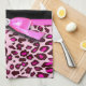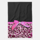 Hot pink leopard print ribbon bow graphic kitchen towel