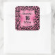 Stickers featuring a pink faux foil square over a stylish hot pink and black leopard print pattern - these sweet 16 birthday party stickers are great to make your own personalized stickers for party favors, envelopes and more. MATCHING items in our collection.