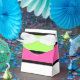 Bold shades of hot pink, lime, black and white striped favor box.