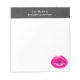A notepad with an illustration featuring hot pink lips. Bold and vibrant image.