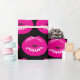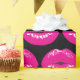 Wrapping paper with an illustration featuring hot pink lips. Bold and vibrant image. Set on a black background.