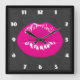 Hot Pink Lips Glamorous Illustration Square Wall Clock