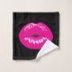 Towel set with an illustration featuring hot pink lips. Bold and vibrant image. Set on a black background.