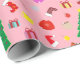 This hot pink modern Christmas tree and stuff wrapping paper has a pattern featuring lots of different Christmas items such as a Christmas tree, presents, sweater, stockings etc on a pink background. Merry & bright indeed.