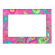 Add a splash of hot pink color with this magnet frame. Great for someone who loves the color pink. The bold colors of this trendy paisley design features an hot pink fuchsia background. Bright, fresh, modern paisleys make a beautiful artistic design that includes inspirational words of Love, Hope, Faith, Inspire, Cherish, Be Happy, Dream, and Live in the background between the paisleys. This Mod Paisley collection, designed by Phyllis Dobbs, uses the colors of teal, turquoise, lime green, wine, yellow, fuchsia and orange to create a fun and whimsey take on the traditional and popular paisley motif. The paisley motif is both trendy, modern and contemporary. Fully customizable for personalization with your own words to add your own message.