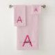 Hot Pink Modern Script Girly Monogram Name Bath Towel Set
