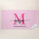Hot Pink Modern Script Girly Monogram Name Beach Towel