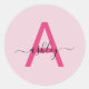 Hot Pink Modern Script Girly Monogram Name Classic Round Sticker