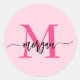 Hot Pink Modern Script Girly Monogram Name Classic Round Sticker
