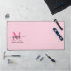 Hot Pink Modern Script Girly Monogram Name Desk Mat