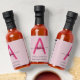 Add a touch of spice to your event with this personalized hot sauce bottle, designed for those with discerning taste. Featuring a bold hot pink monogram and elegant script, this label adds sophistication to even the most fiery of flavors. Whether you're gifting it as a party favor or using it to elevate your table settings, this hot sauce will make an impression.