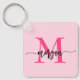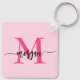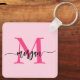Hot Pink Modern Script Girly Monogram Name Keychain