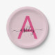 Hot Pink Modern Script Girly Monogram Name Paper Plates