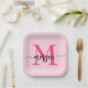 Hot Pink Modern Script Girly Monogram Name Paper Plates