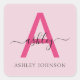 Hot Pink Modern Script Girly Monogram Name Square Sticker