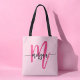 Hot Pink Modern Script Girly Monogram Name Tote Bag