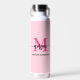 Hot Pink Modern Script Girly Monogram Name Water Bottle