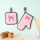 Hot Pink Monogram Girl's Kitchen Script Oven Mitt & Pot Holder Set