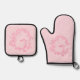 Hot Pink Monogram Girl's Kitchen Script Oven Mitt & Pot Holder Set