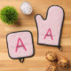 Hot Pink Monogram Girl's Kitchen Script Oven Mitt & Pot Holder Set