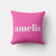 Cute pillow that features your monogram name or initials in a bold white popular font and a hot pink background. You can adjust the size of the font in the design tool for shorter or longer names. Perfect bedroom and dorm room decor.