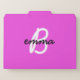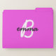 Trendy, stylish custom name and initial monogram style file folders in modern minimalist script typography in off black and white on a simple fun hot neon pink background. The name and initial can easily be personalized with your own name or the name of a loved one for a perfect gift for a friend or loved one!