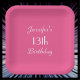 Hot Pink, Name Square round 13th Birthday Party Paper Plates