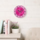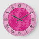 hot pink on pink chic damask roman numerals large clock