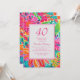 Hot Pink Orange Watercolor Flowers 40th Birthday Invitation