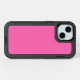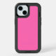 A bright, solid color "Hot Pink" Otterbox Defender iPhone 15 Case. Hot Pink is a bright rosy pink. Click on "Customize" to change color or to add a pattern or design. Product Hex Code: #ff69b4