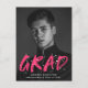 Invite guests to celebrate the guests with our Modern Paint Splatter photo graduation party invites. The design features the graduate's vertical photo with "Grad" in hot pink lettering with white paint splatters. Personalize the front of the creative graduation party invitations by adding the graduate's name, school name, and graduation year. The back of the graduation party postcard features your return address and party details. The design is perfect to use for both high school and college graduates.