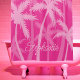 This modern trendy shower curtain features a tropical palm tree design in hot pink, magenta and fuchsia shades of pink. Personalize the script typography with your name or monogram.