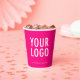Hot Pink Paper Cups Custom Business Logo 8 oz