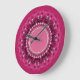 Peacock featheres pattern inspired design in hot pink colours. Light pink centre circle with gold and white dot trims to enhance the clock hands plus also perfect space for you to personalize with text, if you desire.