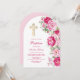 Hot Pink Peonies Arch Baptism Invitation